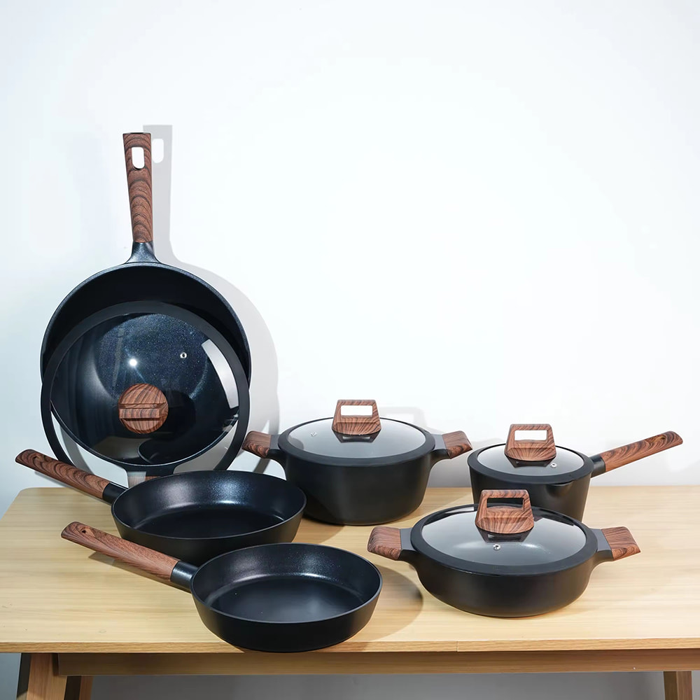Bahay / produkto / Set ng Cookware / Non Stick Cookware Set Itim na mga kaldero at kawali sa kusina
