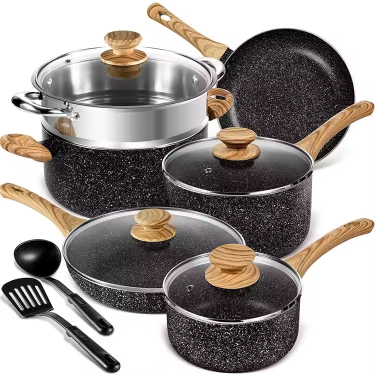 Non Stick Cookware Set Itim na mga kaldero at kawali sa kusina