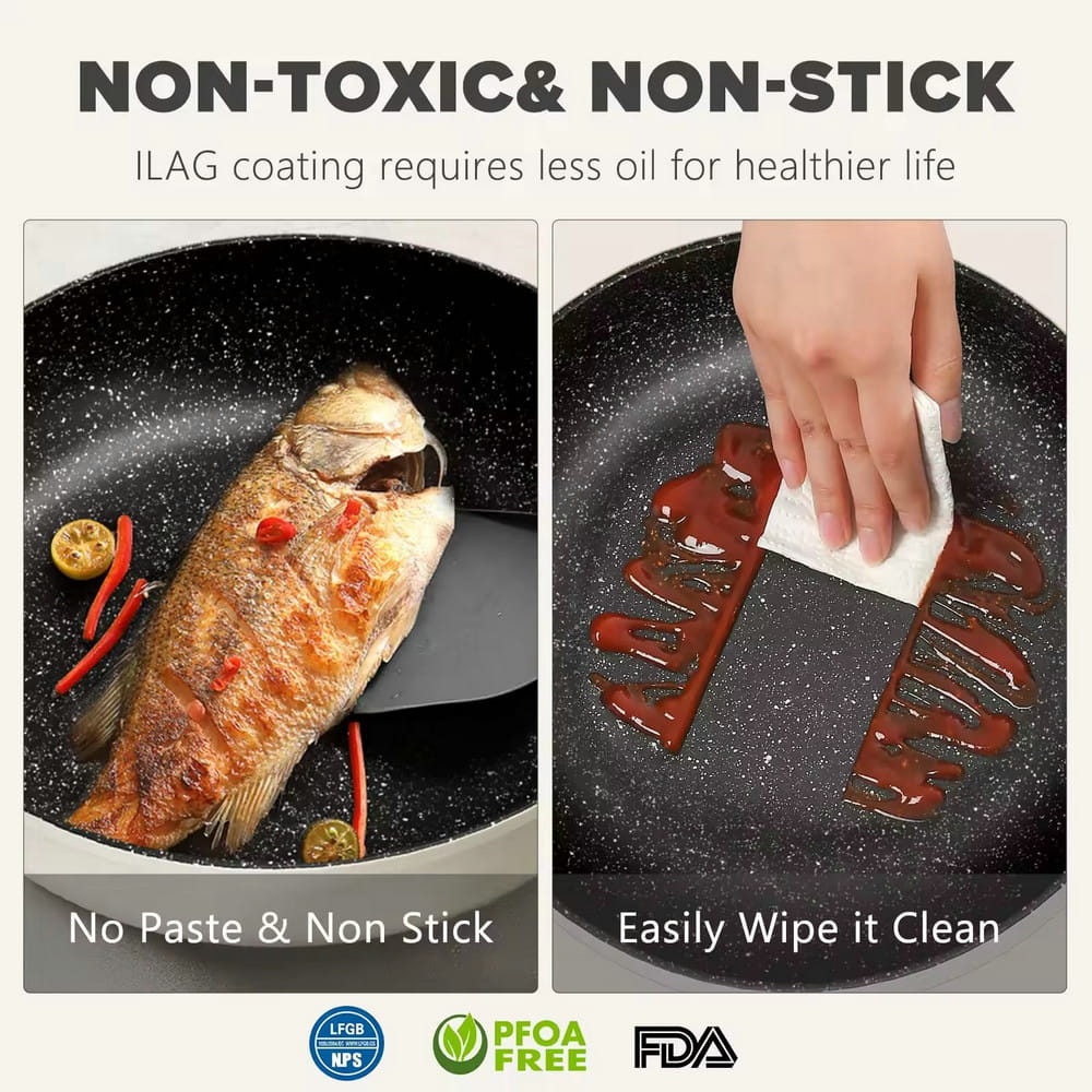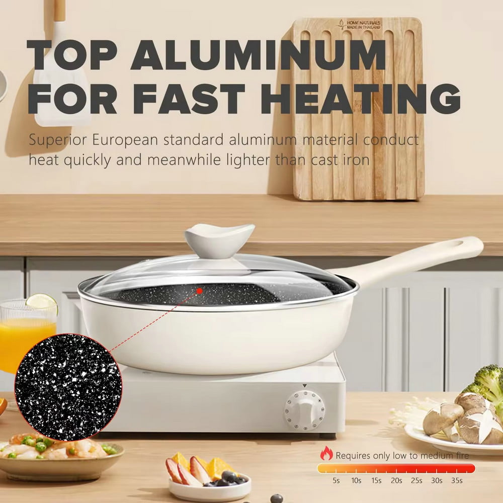 Magaan na granite stone nonstick skillet fry pan para sa pagluluto na may takip ng salamin