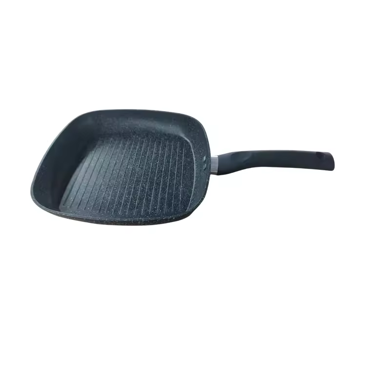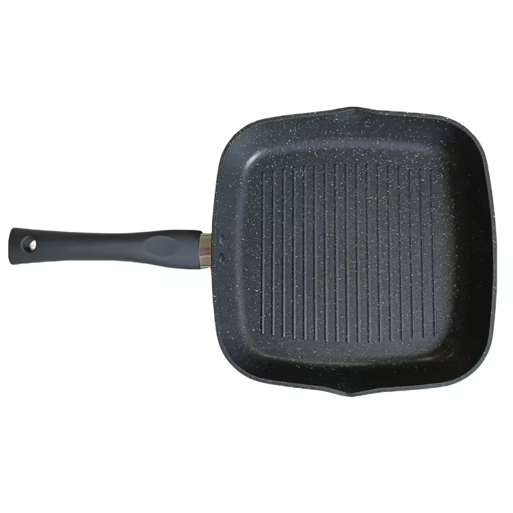 Non-stick Cast Aluminum Grill Pan Square Soft-touch Stay-cool Handle PFOA-Free Coating Induction Compatible Wholesale
